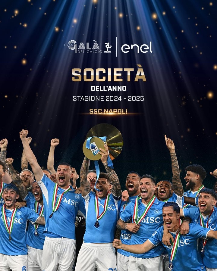 在2025意大利足球盛典的评选中,那不勒斯成功当选2024-25赛季的最佳俱乐部,而孔蒂则当选最佳主教练。