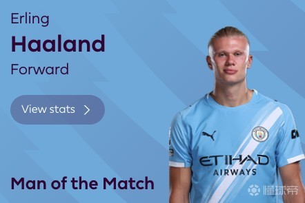英超第14轮,曼城客场5-4险胜富勒姆,此役打入一球达成英超百球里程碑的哈兰德当选英超官方全场最佳球员。