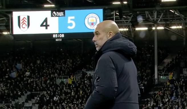 此役客场对阵富勒姆,曼城一度取得5-1领先,但随后连丢三球,最终以5-4的比分险胜对手。