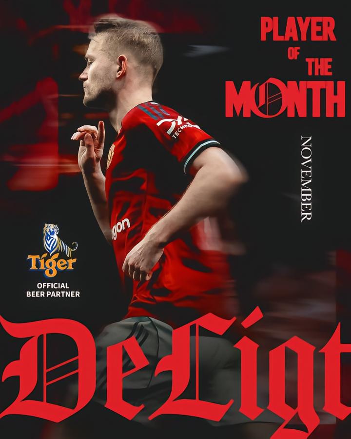 曼联官方宣布,德利赫特当选队内11月最佳球员。