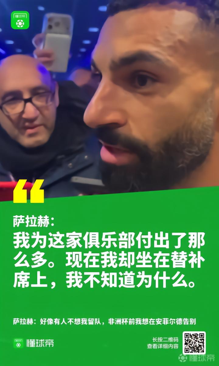 利兹联3-3利物浦赛后,枯坐板凳,连续三场没有获得首发的萨拉赫在混采区接受了采访,他对这一状况非常不满。
