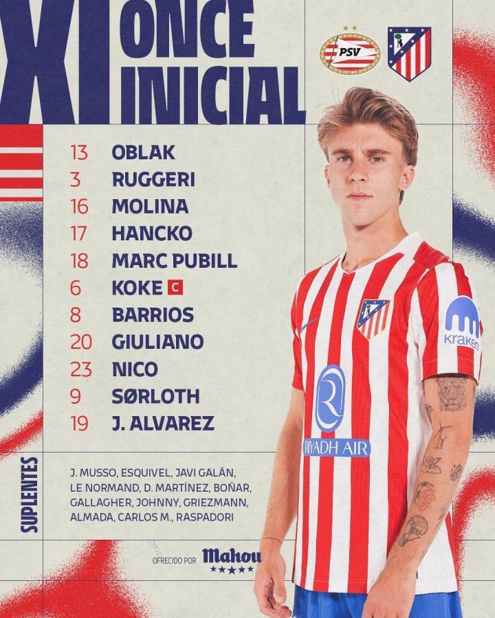 北京时间12月10日凌晨4点,欧冠联赛阶段第6轮展开一场焦点战役,马竞客场对阵埃因霍温。赛前,双方公布首发阵容。