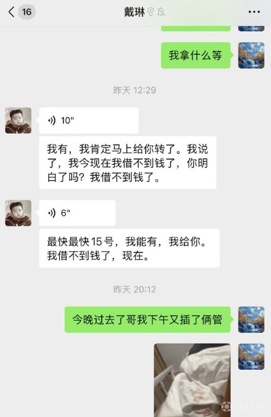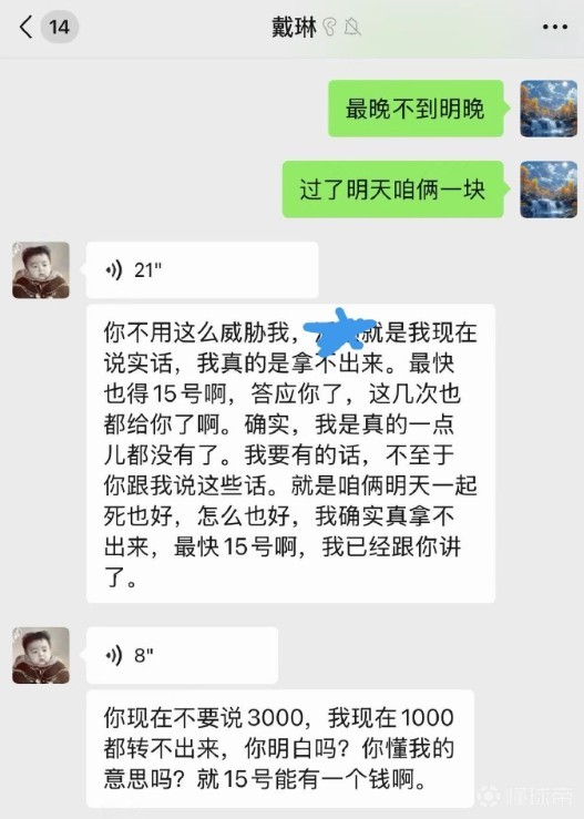 不过,戴琳表示自己目前手头确实没有钱,需要到15号才能还钱。