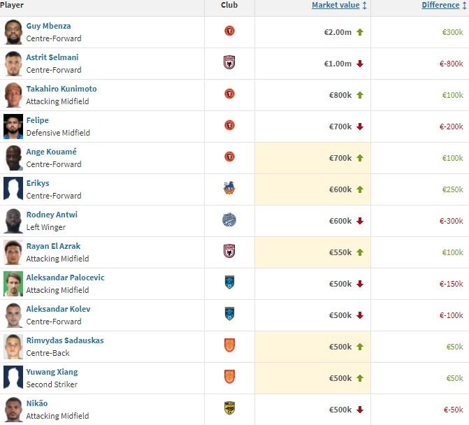 北京时间12月9日,德转官网更新了中甲球员身价榜。居伊-姆本扎以200万欧成为中甲身价第1,向余望50万欧成为中国内地球员身价第1。