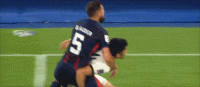 第45+2分钟,茹萨被闷到头部,痛苦倒地