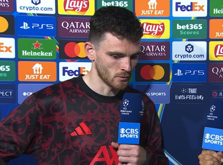 在欧冠客场1-0击败国际米兰后,利物浦后卫罗伯逊接受了CBS体育的采访。