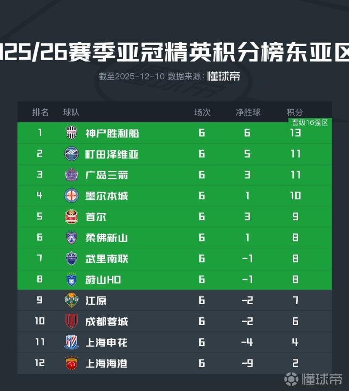 目前亚冠精英东亚区联赛阶段剩余最后两轮,海港将会先后对阵K联赛的江原(客场)和蔚山HD(主场),目前他们距离排名第8位的蔚山HD相差6分,这意味着如果海港想要进入前8名晋级16强,他们就必须确保最后两轮比赛全胜。