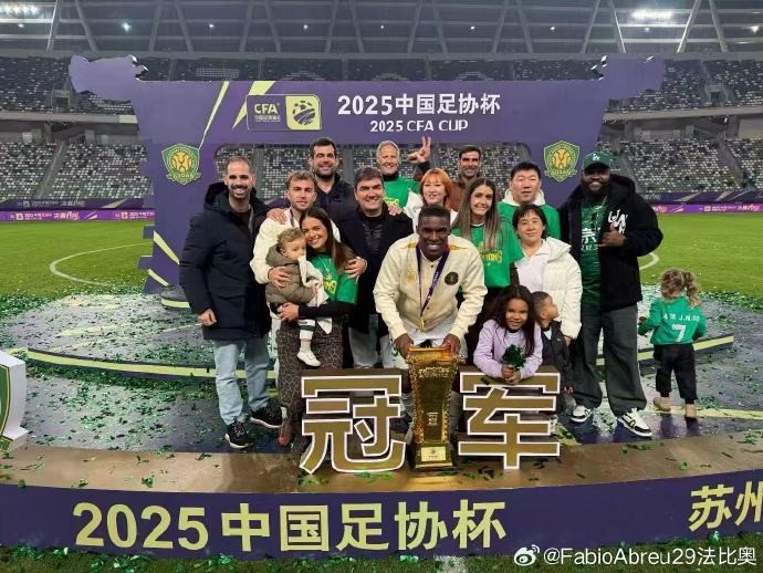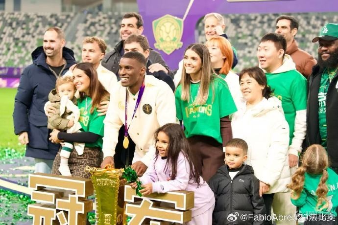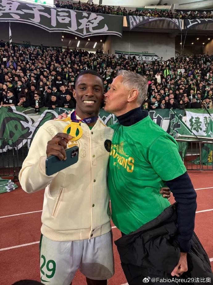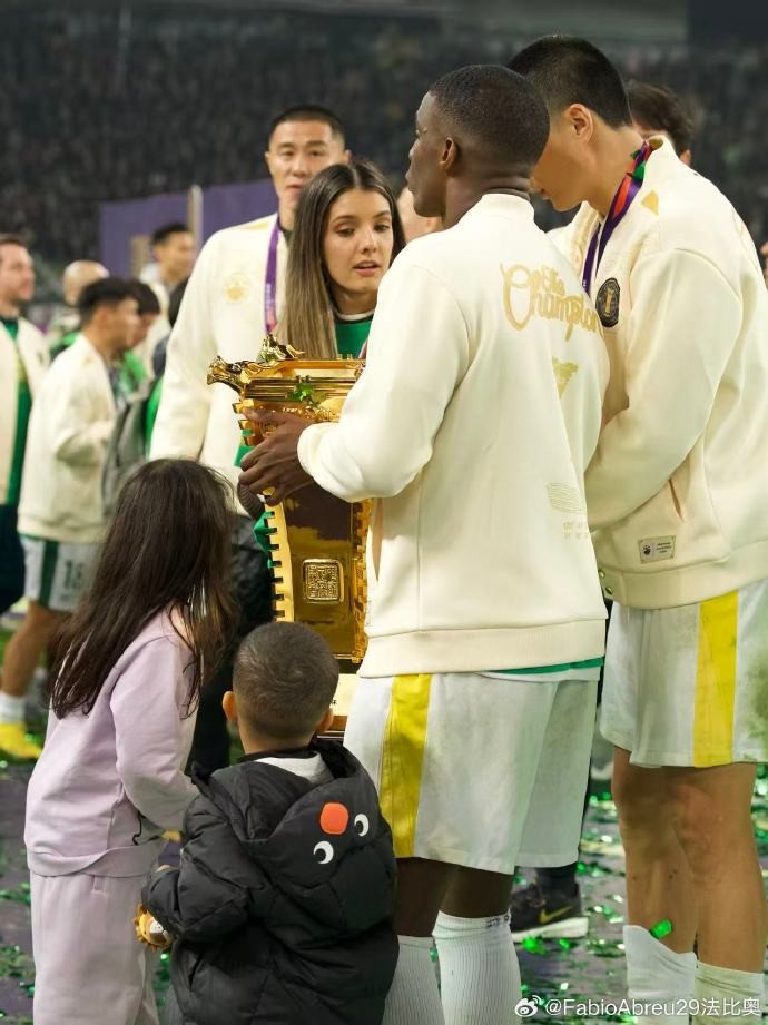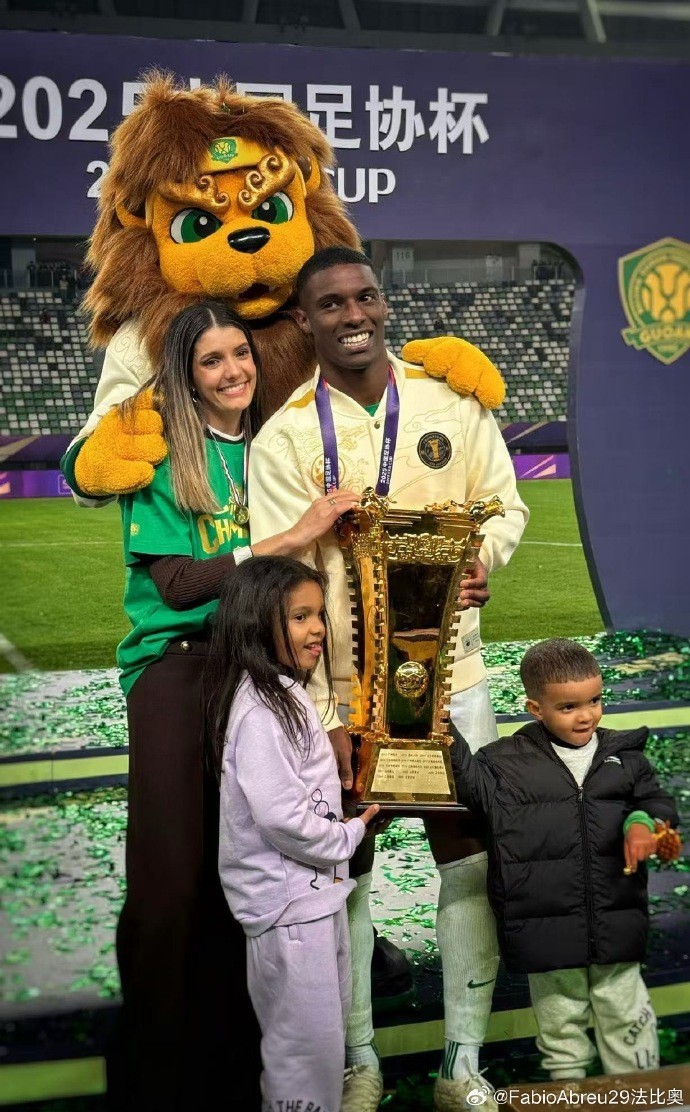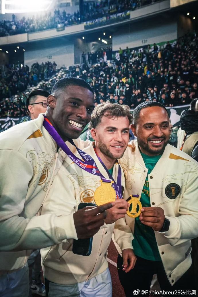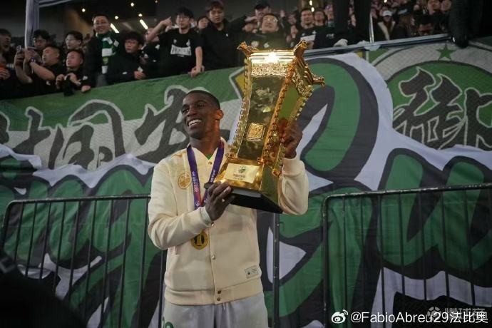 国安外援法比奥-阿布雷乌在个人社交媒体上晒照,以庆祝球队获得本赛季足协杯冠军。