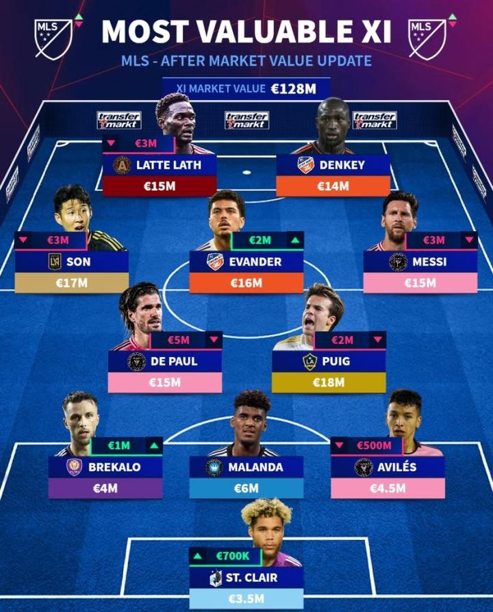北京时间12月11日,在更新了美职联球员的身价之后,德转列出了目前美职联最贵的11人阵容,梅西、孙兴慜领衔,德保罗、普伊奇在列。