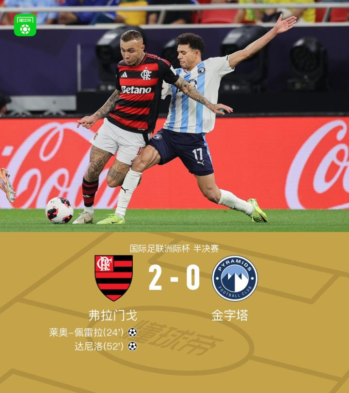 弗拉门戈2-0金字塔晋级洲际杯决赛,佩雷拉破门,达尼洛建功