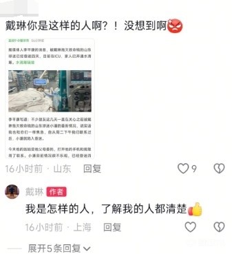 随后戴琳回复:我是怎样的人,了解我的人都清楚。