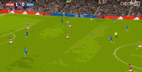 第45+4分钟,再次取得领先,卡塞米罗头槌破门,曼联2-1