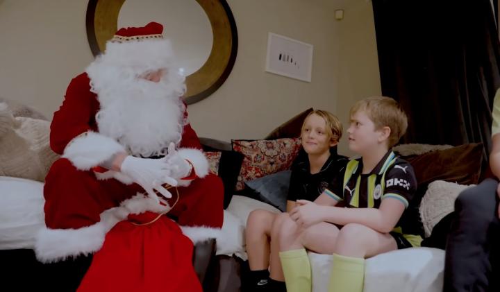 哈兰德近日化身圣诞老人,秘密走访多户家庭为孩子们送去节日礼物,但最终因声音被当场识破身份。他还打趣称,有孩子因为支持其他俱乐部,被他列入了“淘气名单”。