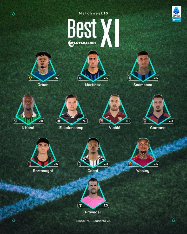 北京时间12月16日,意甲官方公布了联赛第15轮的最佳阵容,劳塔罗、巴尔泰萨吉、卡瓦尔入选。