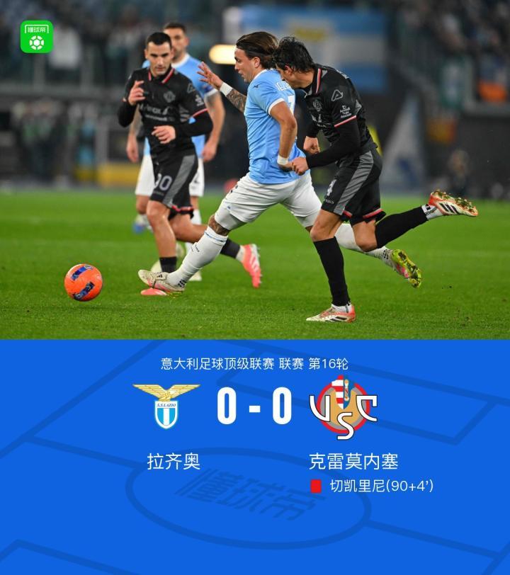 拉齐奥0-0克雷莫内塞,诺斯林、博纳佐利造险,切凯里尼染红
