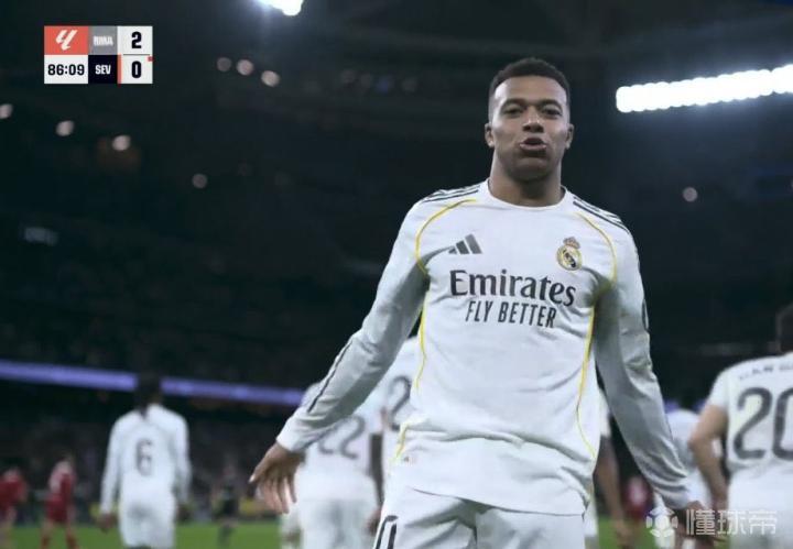 此役主场对阵塞维利亚,姆巴佩在比赛第86分钟主罚点球破门,帮助皇马取得2-0领先。