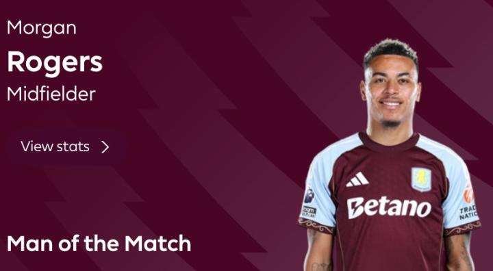 北京时间12月22日,在英超第17轮的比赛中,阿斯顿维拉依靠摩根-罗杰斯的梅开二度主场2-1击败曼联,豪取各项赛事的10连胜和英超的7连胜,赛后摩根-罗杰斯也毫无悬念地当选了英超官方本场比赛的最佳球员。