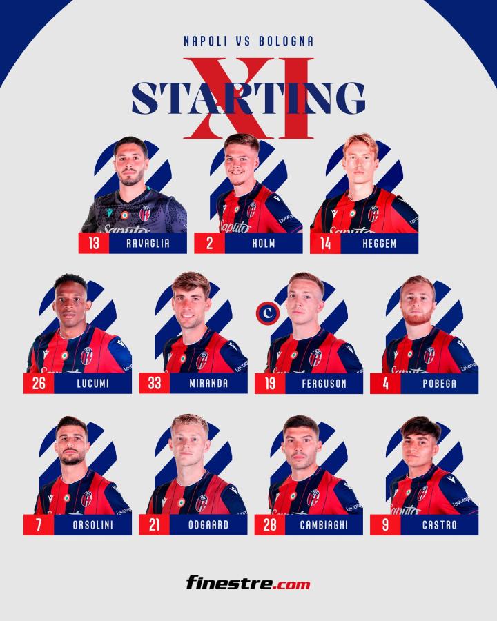 博洛尼亚首发:13-拉瓦利亚、2-霍尔姆、14-黑格姆、26-卢库米、33-胡安-米兰达、19-刘易斯-弗格森、4-波贝加、7-奥尔索利尼、21-延斯-厄德高、28-坎比亚吉、9-圣地亚哥-卡斯特罗