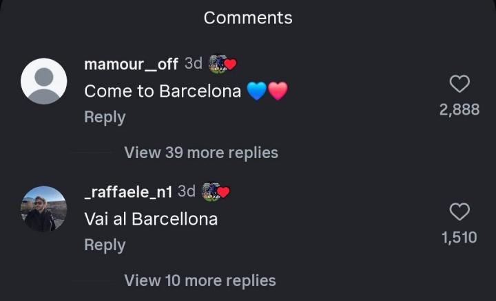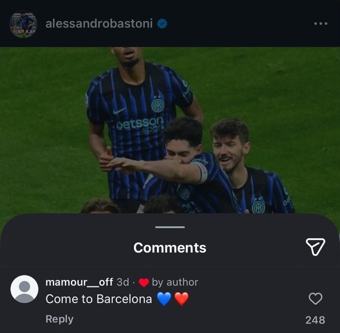 此前在国米击败科莫之后,巴斯托尼在社交媒体上晒出了自己的照片,3天前有一名球迷在他的动态下评论“来巴萨吧❤️💙❤️💙”,可以看到,巴斯托尼给这条动态点了赞。