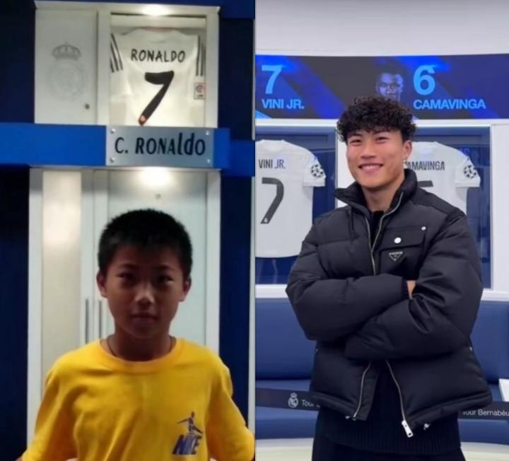 北京时间12月25日深夜,中国男足国脚、山东泰山球员谢文能在社交媒体里分享了他参观西甲豪门皇家马德里主场伯纳乌球场的圣诞休假照。