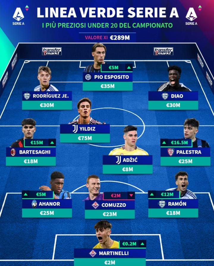 阿萨内-迪奥(科莫)3000万欧元、皮奥-埃斯波西托(国际米兰)3500万欧元(+500万)、赫苏斯-罗德里格斯(科莫)3000万欧元