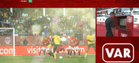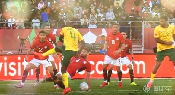 比赛进行到第87分钟出线争议判罚。南非队4号莫科纳射门,埃及球员易卜拉欣倒地封堵时,疑似在禁区线上支撑手手球,主裁观看VAR后没有判罚点球。