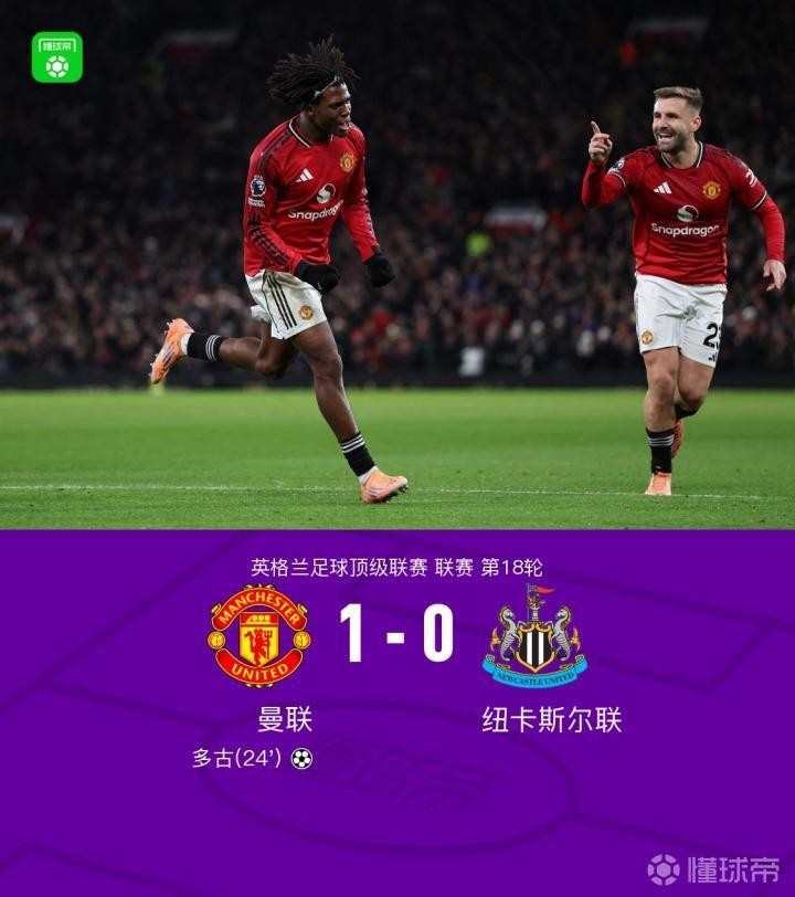 北京时间12月27日曼联坐镇老特拉福德球场迎战纽卡斯尔联,上半场,多古凌空斩破网,斩获曼联生涯首球。下半场,谢什科与霍尔的打门均击中门框。最终,曼联主场1-0力克纽卡。