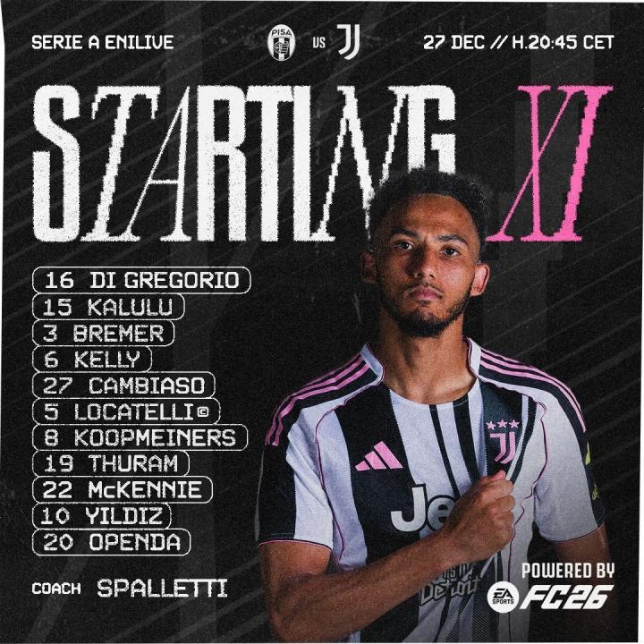 北京时间12月28日凌晨3点45分,意甲联赛第17轮展开一场焦点战役,尤文对阵比萨。赛前,双方公布首发阵容。