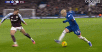 第18分钟,帕尔默推进,加纳乔横传,恩佐打门稍稍偏出
