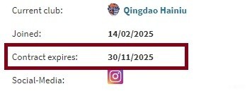 另外,根据德转的数据信息显示,巴西中场菲利佩-奥古斯托与青岛海牛俱乐部的合同已经在今年11月30日到期。
