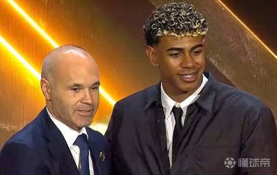 颁奖典礼上,亚马尔获得了2025年度西甲最佳U23球员奖,巴萨传奇伊涅斯塔亲自为亚马尔颁发了奖杯。