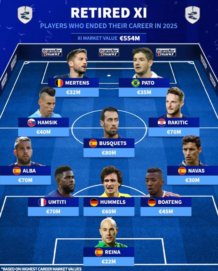 北京时间12月28日,德转列出了2025年退役球员最佳11人阵容,两位中超旧将帕托和哈姆西克上榜,其中生涯德转身价最高的球员是曾经达到8000万欧元的布斯克茨。