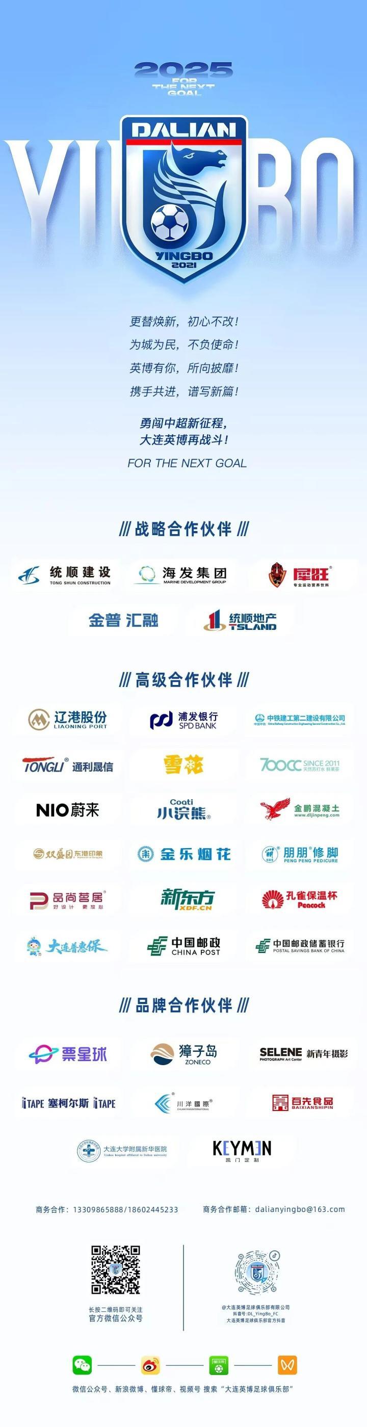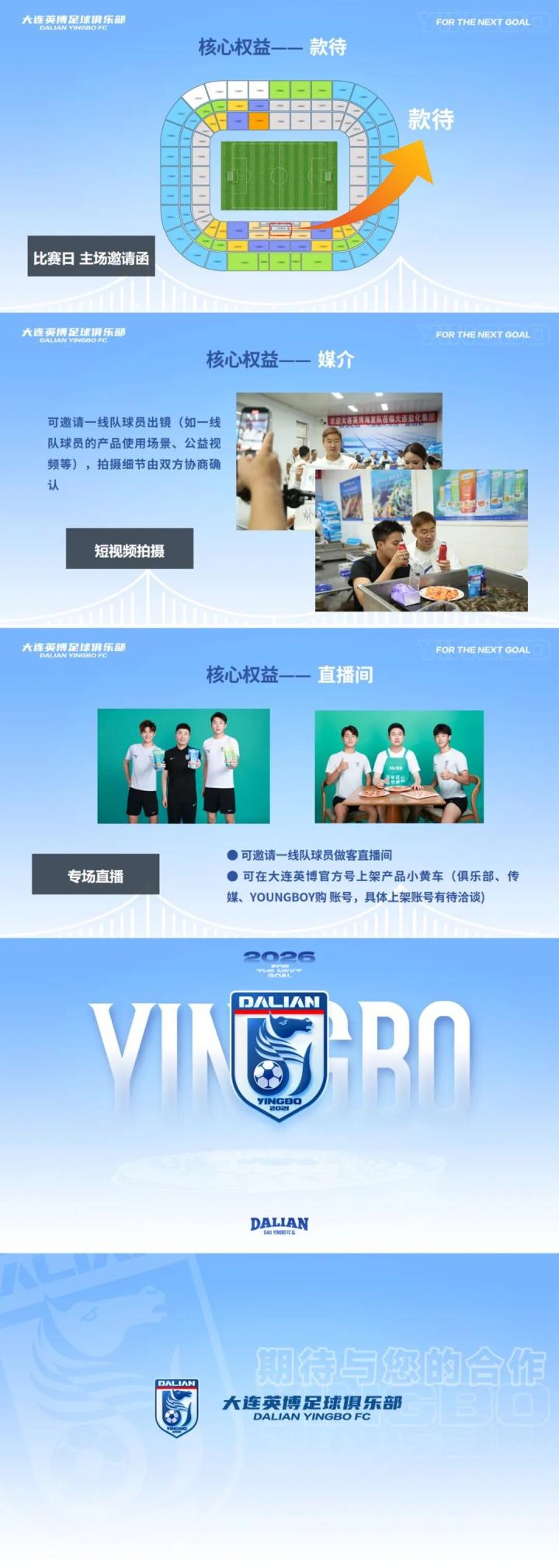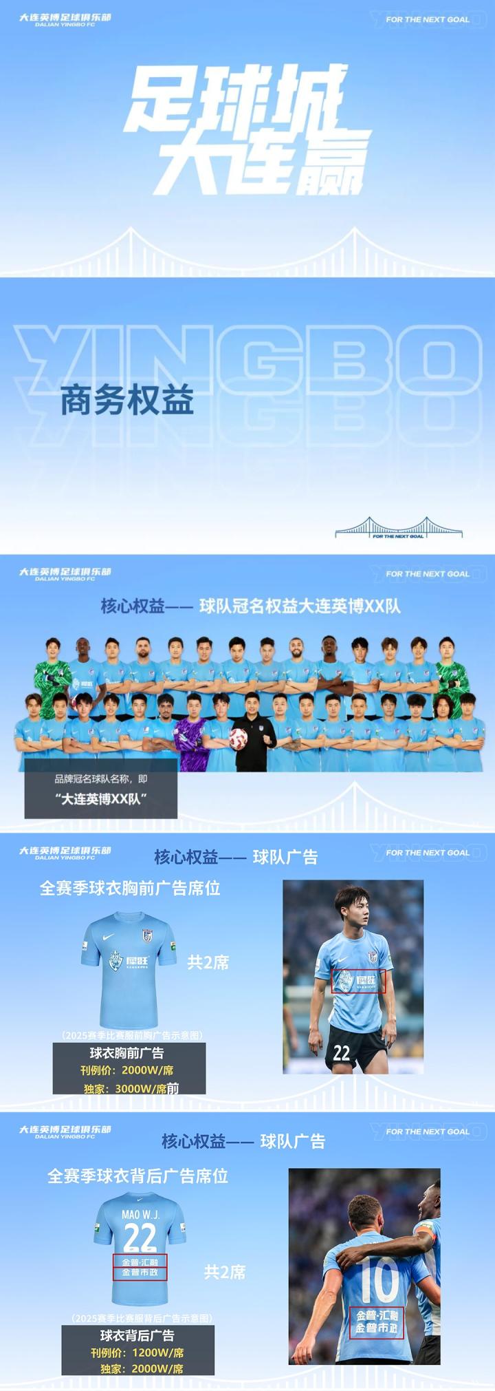 大连英博发布2026中超招商合作手册,现面向市场公开招商,涵盖球队冠名权、球衣胸前广告、球衣背后广告等权益。