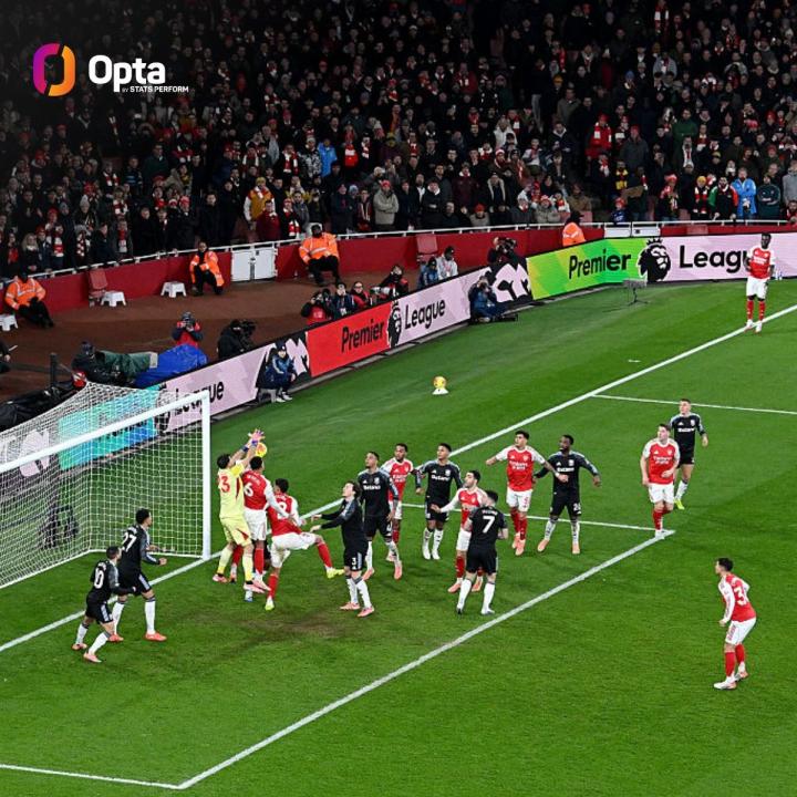 据Opta统计,阿森纳2025年英超已通过角球机会打入17球,英超历史上只有曼联(2012年,18球)曾在单一自然年通过角球进球更多。