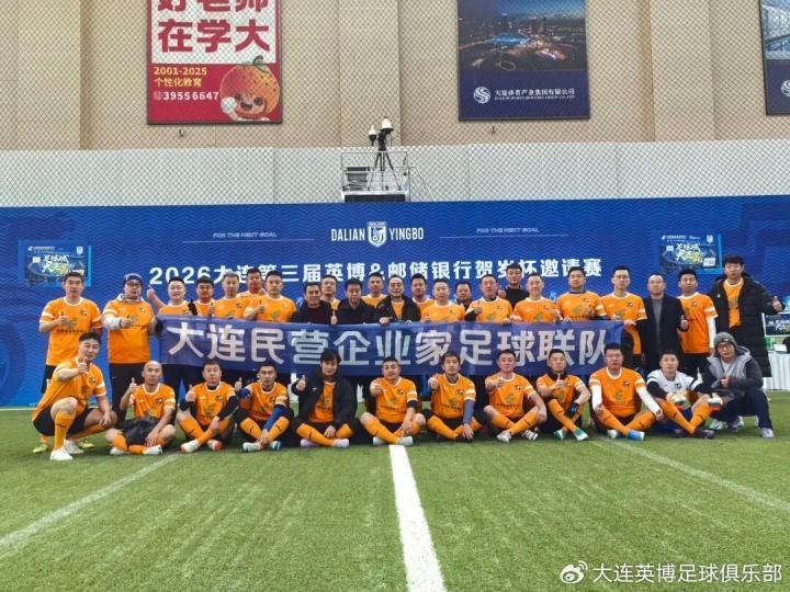 为助力足球事业振兴,同时迎接崭新一年的到来,2025年12月31日,“2026大连第三届英博&邮储银行贺岁杯邀请赛”在大连足球青训基地室内足球场北馆举行。大连市政协副主席、市工商联主席、市足改工作组副组长李延锋,大连市体育局党组成员、副局长、大连市足协副主席兼秘书长王文勇等领导莅临现场,并为比赛开球,共同拉开这场岁末足球盛宴的帷幕。比赛结束后,大连市委统战部副部长、市工商联党组书记赵日强为冠军队伍颁奖。