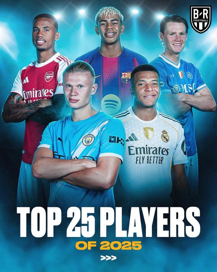 【B/R评2025年25大球星:登贝莱居首,姆巴佩第二,亚马尔第7】