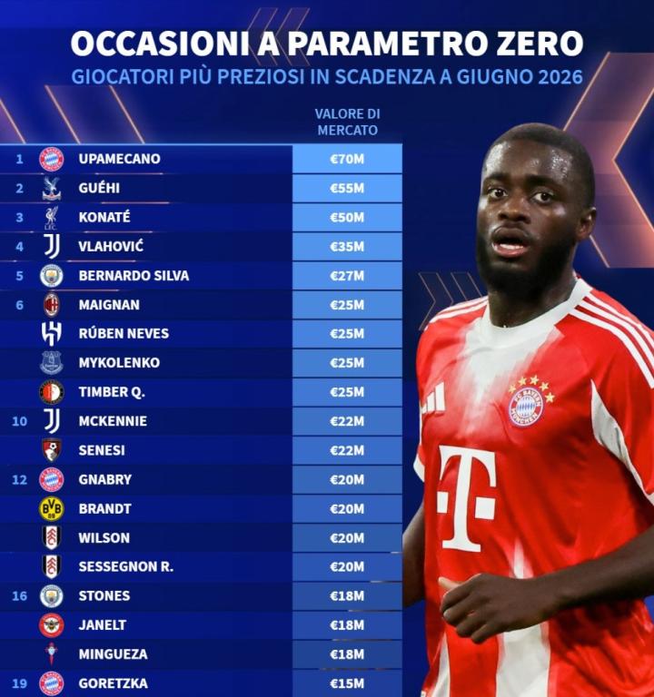 1. 于帕梅卡诺(拜仁慕尼黑) 7000万欧元