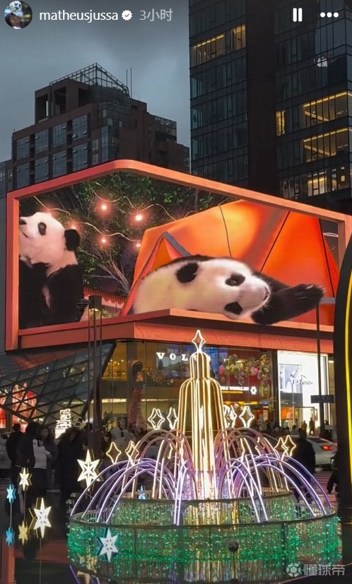 北京时间1月3日,茹萨在个人社交媒体上晒出了商场上的3D熊猫画面。