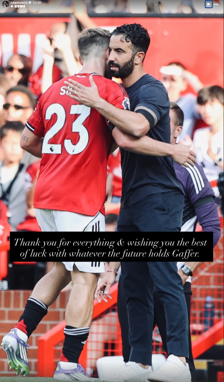 在阿莫林下课后,卢克-肖在社交媒体发文告别,写道:“感谢你所做的一切,祝你未来无论走向何方都一切顺利,教练;”