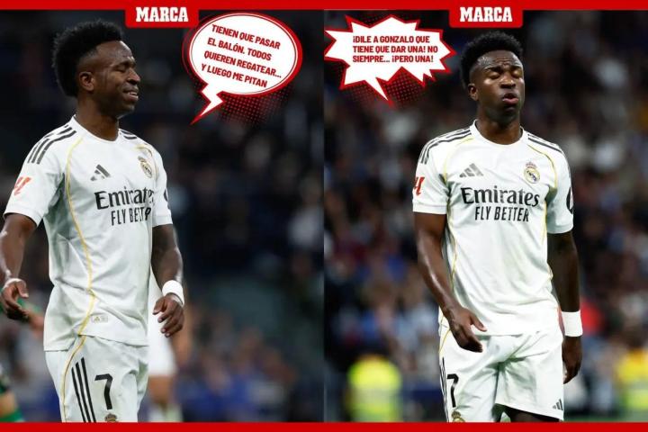 根据Movistar+的唇语解读,维尼修斯在抱怨时还特别提到了之后上演帽子戏法成为全场最佳的贡萨洛:“这样踢根本赢不了,队友们必须多传球才行。现在每个人都想着盘带突破,结果最后挨嘘的人是我。让贡萨洛也尝试传几脚球,不用一直传,偶尔传一次就好。”