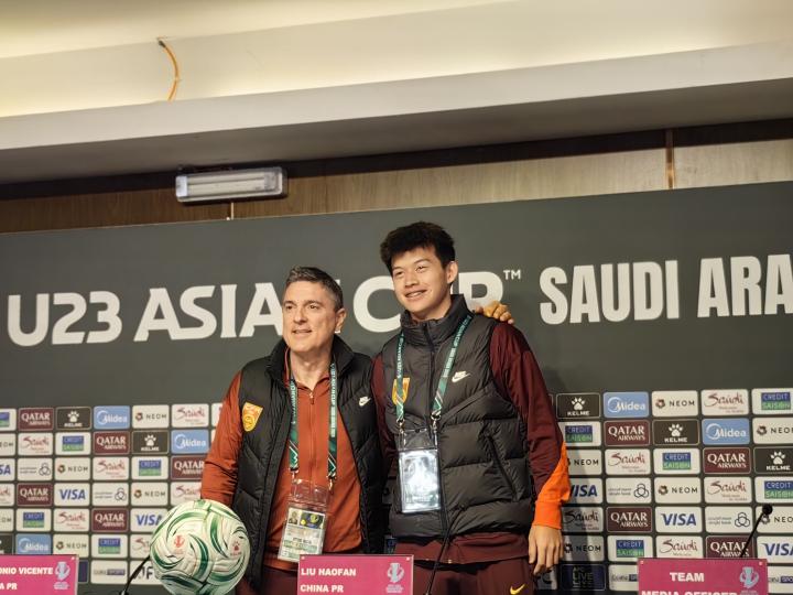 北京时间1月7日,U23亚洲杯伊拉克 vs中国的赛前新闻发布会在利雅得的费萨尔-本法赫德王子体育场进行。据懂球帝前方记者@雷杰深 现场报道,中国队主教练安东尼奥携队员刘浩帆出席。