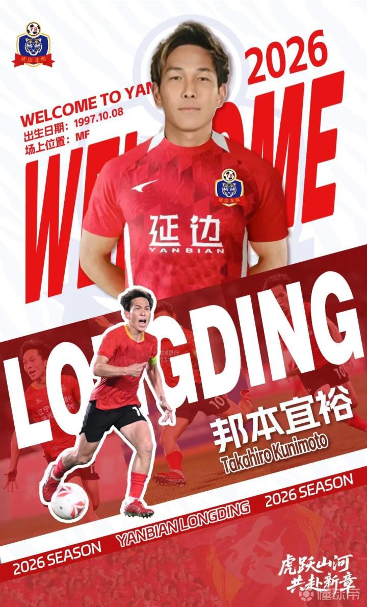 欢迎邦本宜裕加盟延边龙鼎足球俱乐部,相信他的加入将为球队整体实力带来显著提升,并为球队注入冠军基因。美丽延边欢迎你!