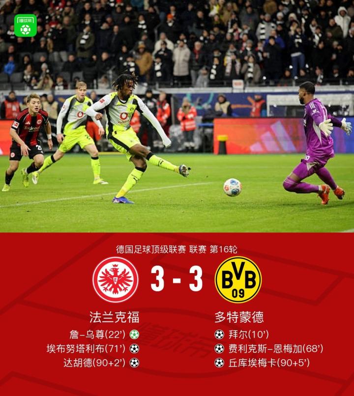剑南春|多特3-3法兰克福,达胡德准绝杀,丘库埃梅卡反绝平