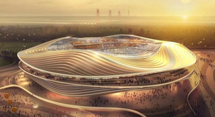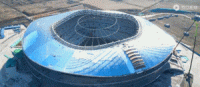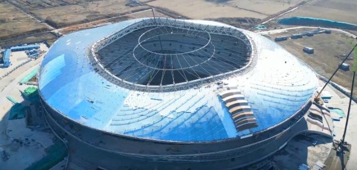 据齐鲁网闪电新闻报道,“天空骨架”完成吊装,济南黄河体育中心专业足球场正式进入屋盖膜结构施工阶段。