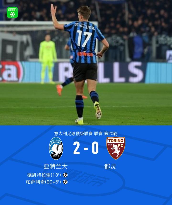 亚特兰大2-0都灵,德凯特拉雷破门,帕萨利奇建功
