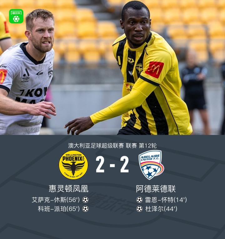 惠灵顿凤凰连扳两城2-2阿德莱德联,古德温送助攻,杜泽尔首球