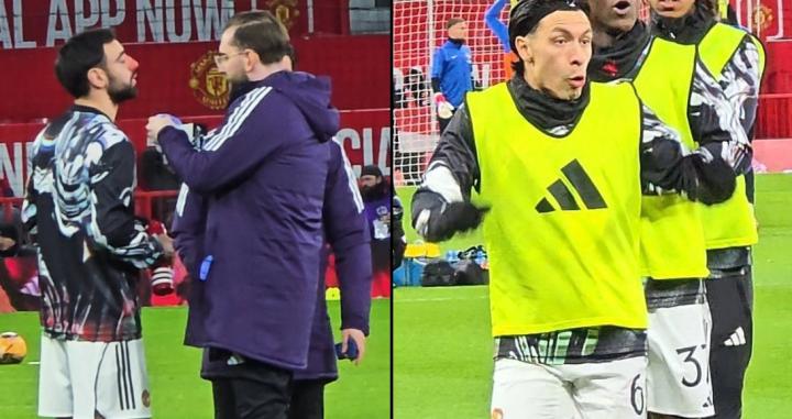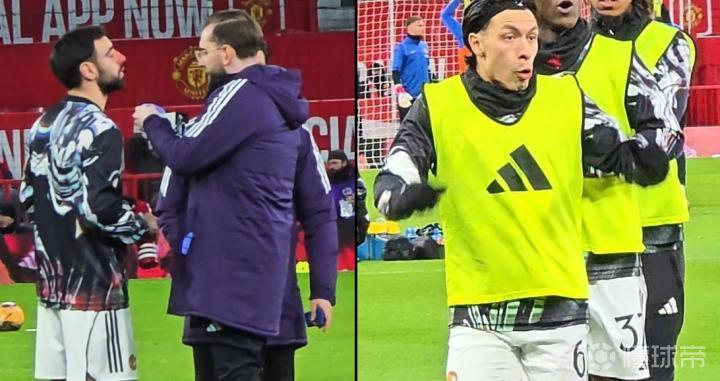 布鲁诺-费尔南德斯在热身时脸部遭受重击,随后被医护人员检查并治疗。