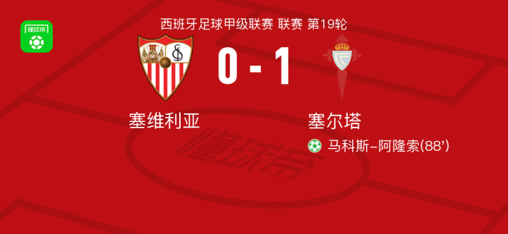 塞尔塔1-0塞维利亚,马科斯-阿隆索绝杀