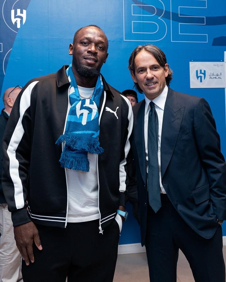 本场比赛博尔特作为新月队嘉宾受邀前来,他也与新月主帅以及球员热情合影留念。