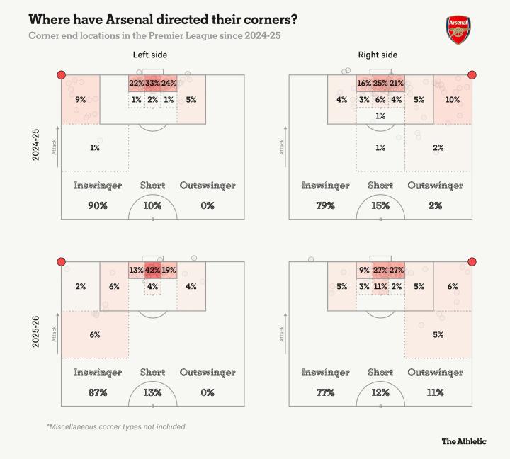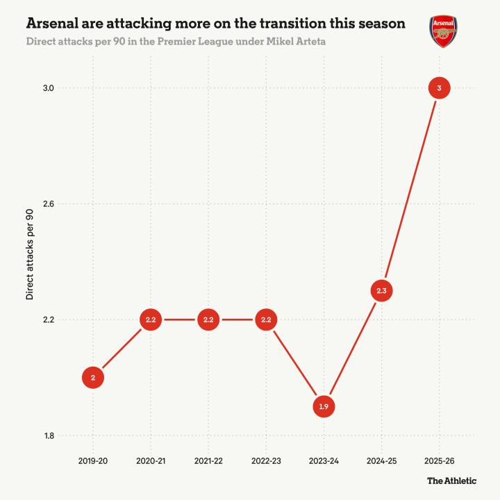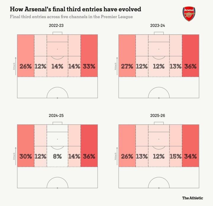 那么,阿森纳是如何巩固优势、引入调整并实现进化的呢?The Athletic在此为您解析他们2025-26赛季的风格。
